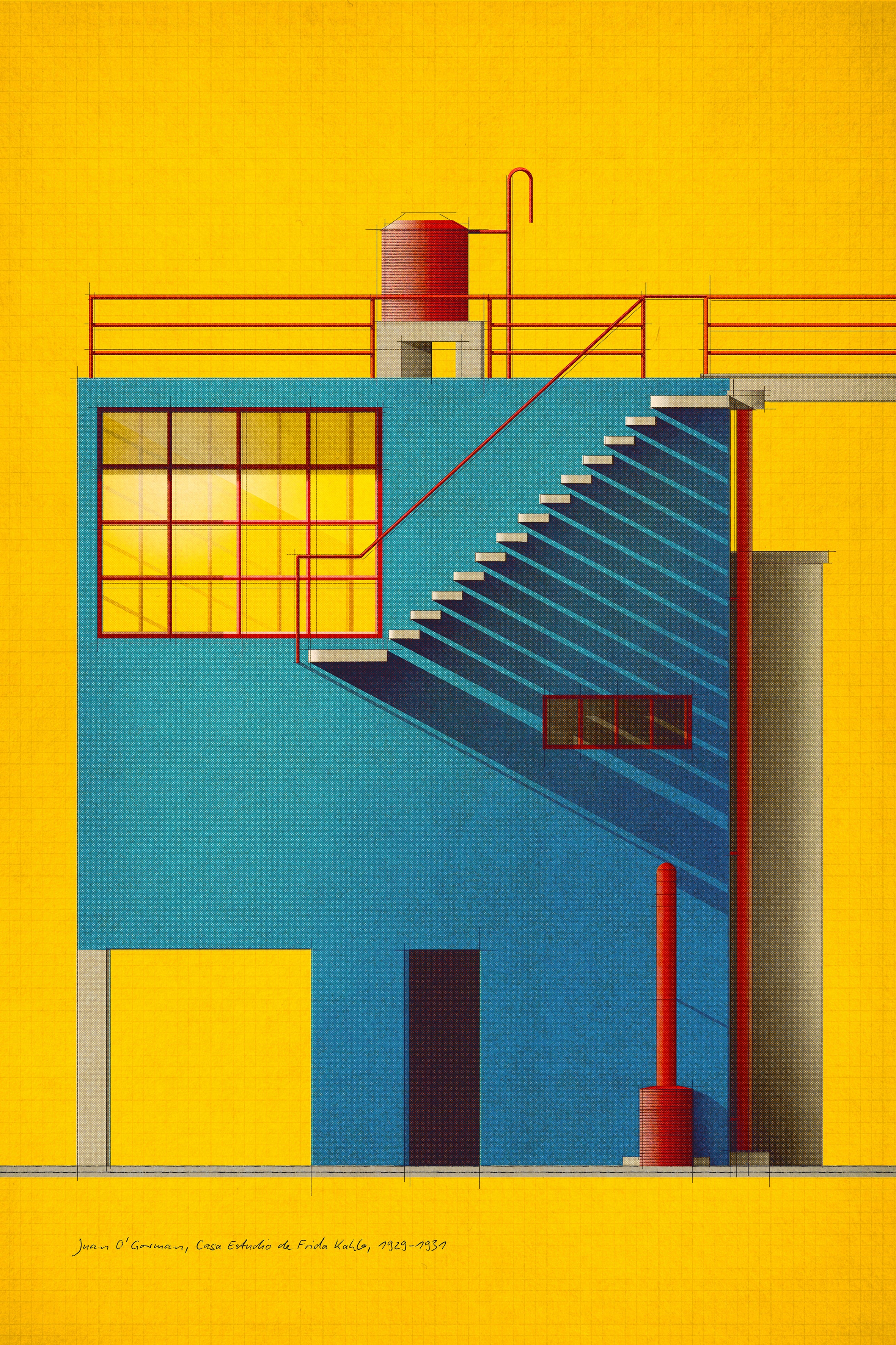 Drawn interpretations of classic modernist facades